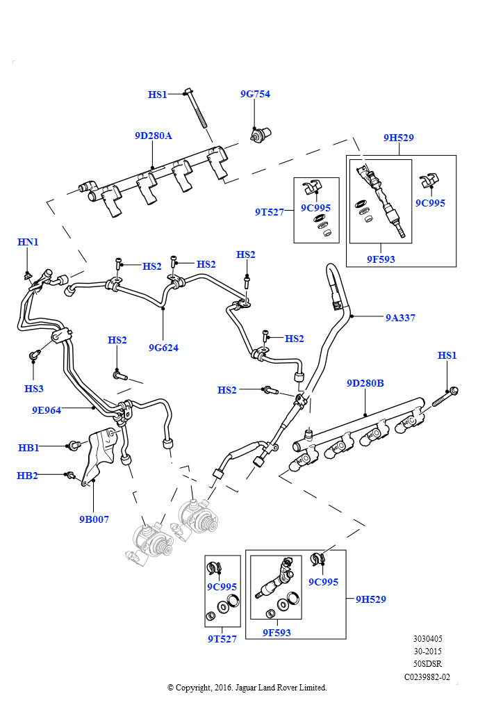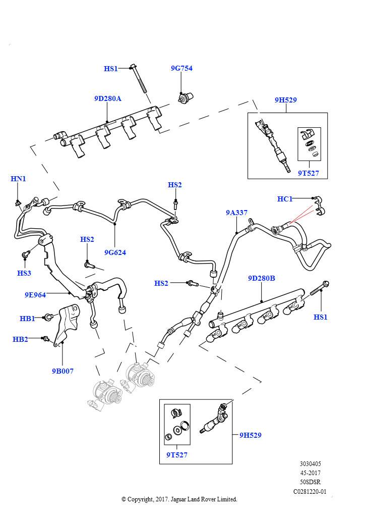 Топливные форсунки и трубопроводы (5.0 бензиновый AJ133 DOHC CDA, 5.0L P AJ133 DOHC CDA S/C Enhanced)