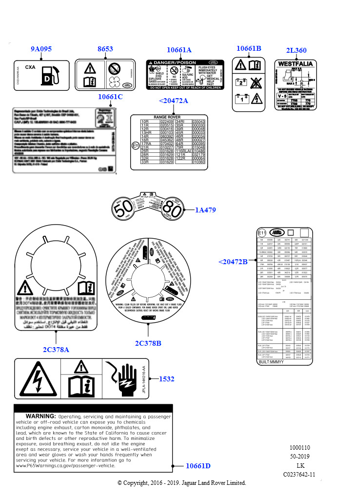 Ярлыки (Тяговая батарея, 2.0L AJ200P Hi PHEV)