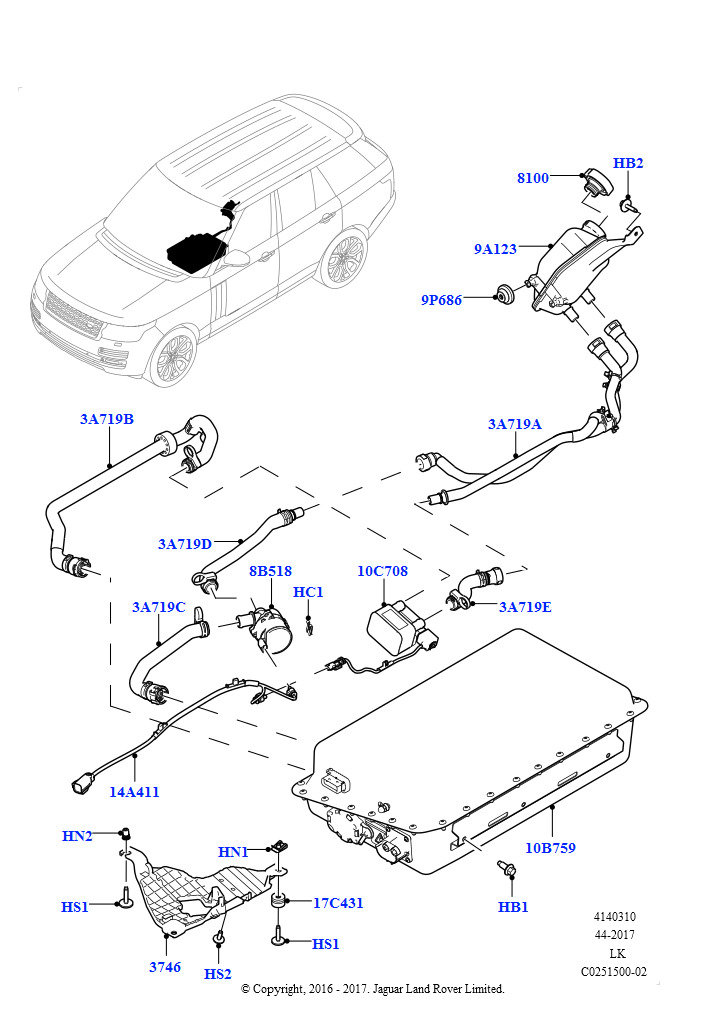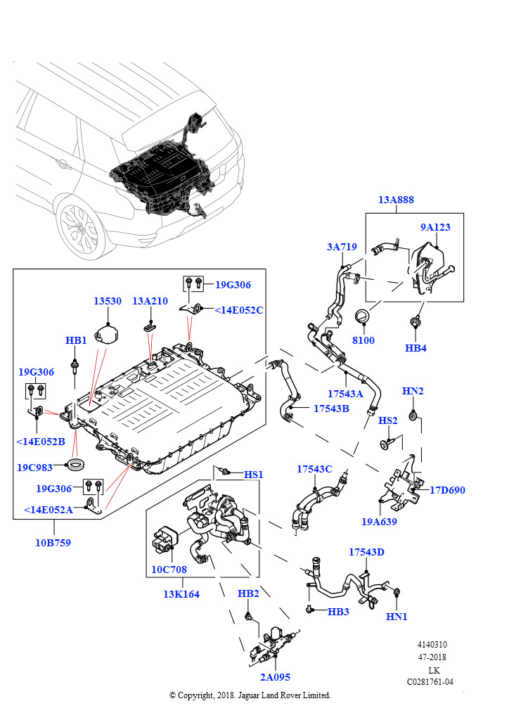 Гибридные электрические модули (Аккумулятор и охлаждение, Передняя и средняя части, 2.0L AJ200P Hi PHEV)