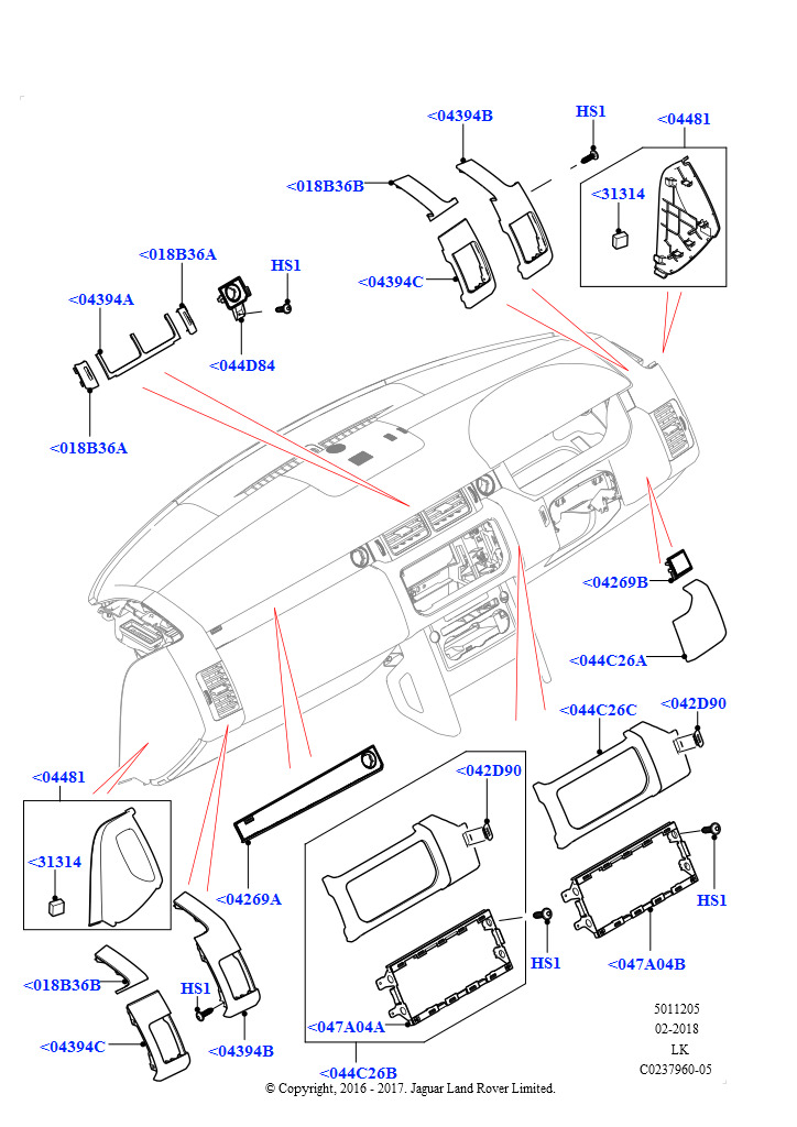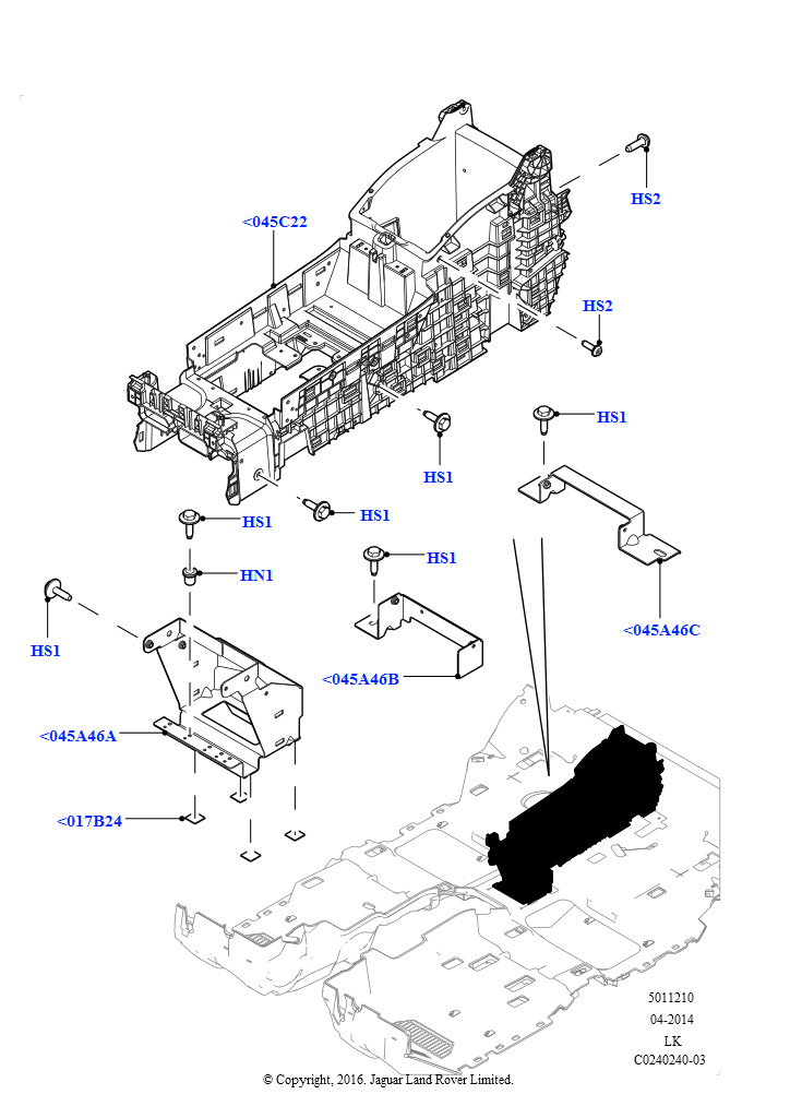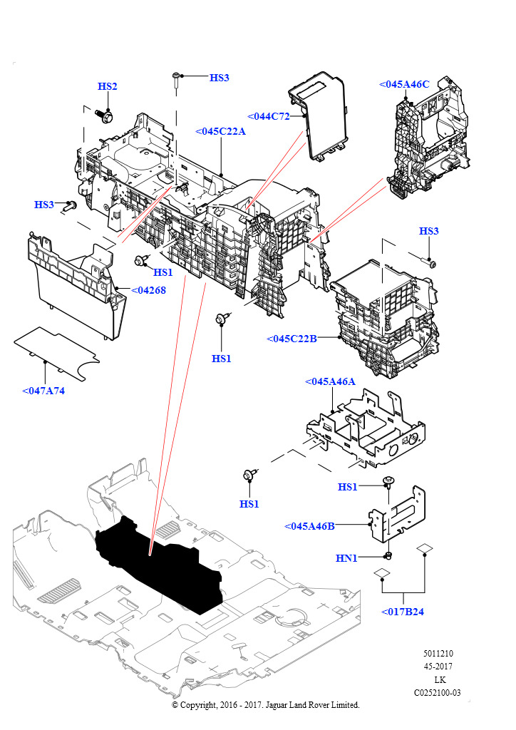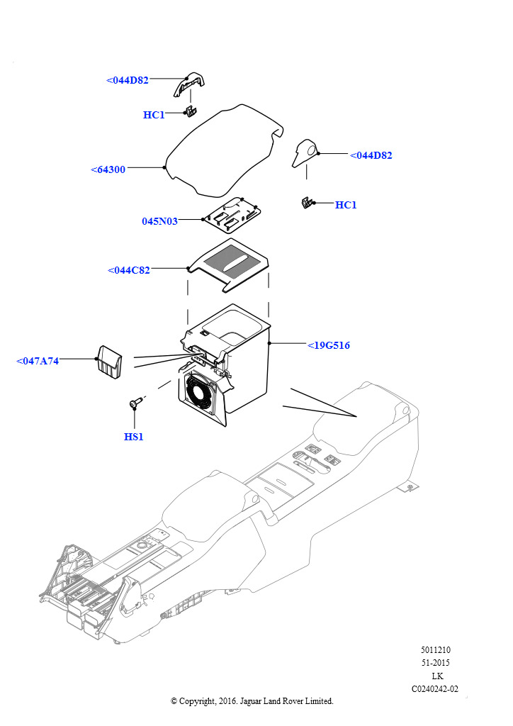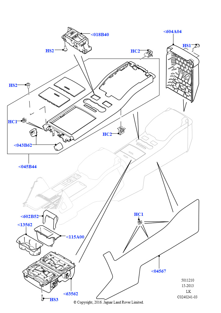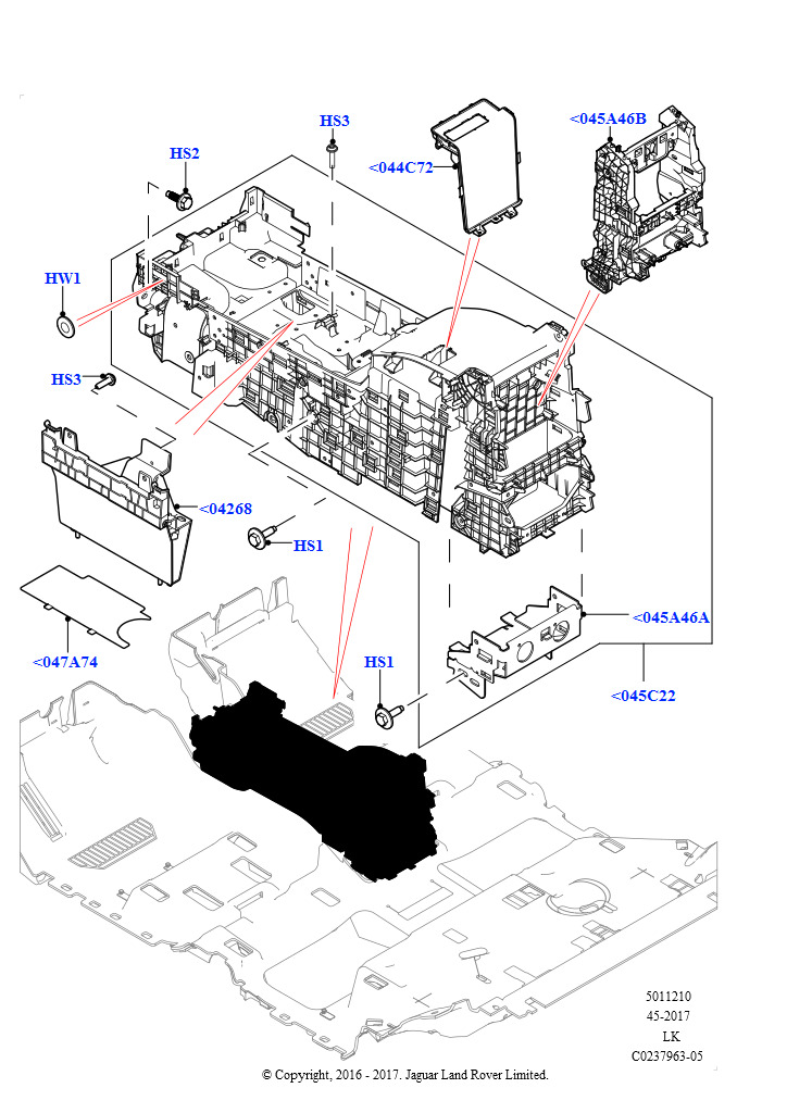 Напольная консоль (Для держателя в сборе, Передний, Наружные элементы, Стандартная колесная база)