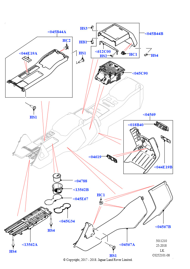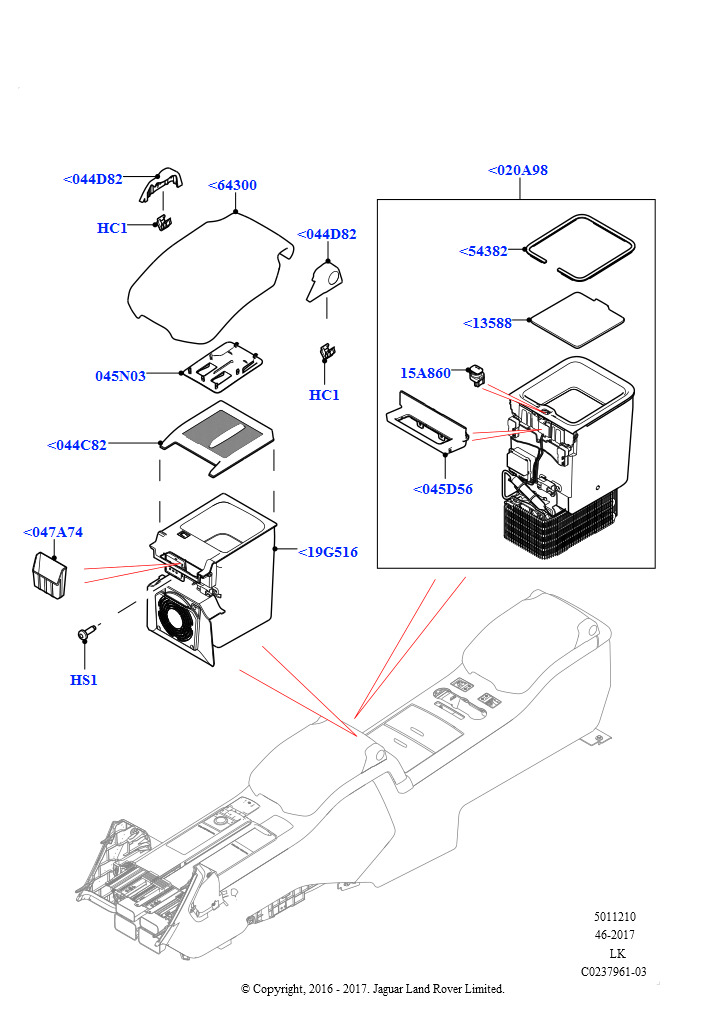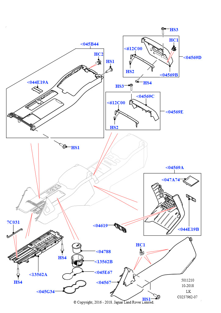 Напольная консоль (Для держателя в сборе, Задний, Внутренние элементы, С раздельн.задн.сиден.40/40, С задн.сиденьям, складыв.вручную)
